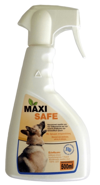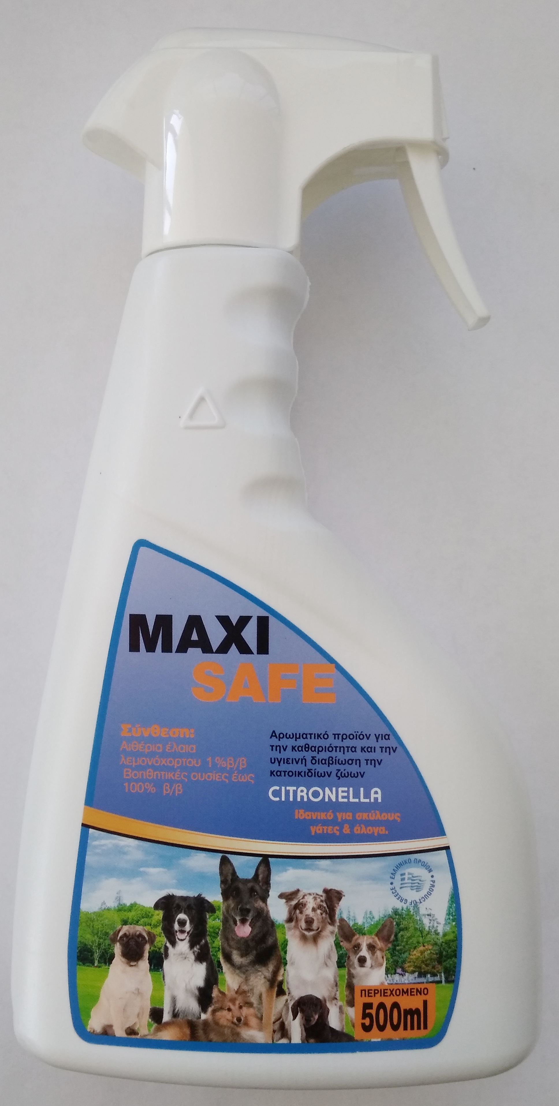 Το Maxi Safe με τη μοναδική σύνθεση βασισμένη σε Citronella, ευκάλυπτο και άλλα φυσικά βιοδιασπώμενα αιθέρια έλαια, προστατεύει το τρίχωμα του ζώου σας από εξωτερικούς παράγοντες . Το προϊόν είναι ασφαλές, μη τοξικό και μπορεί να χρησιμοποιηθεί για μια υγιή διαβίωση των ζώων σας.